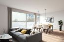 Auf der Süd-Westseite sind die Häuser großflächig verglast mit davorliegenden Balkonen und Terrassen. Die Fassaden sind hell verputzt, die Fenster u. Fensterbänke erhalten eine perlgraue Oberfläche.